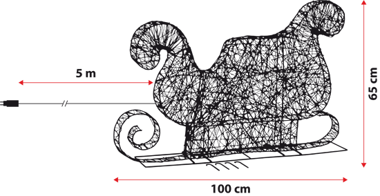 La slitta, è alta 65 e lunga 100 centimetri, ha 285 led a luce fissa e 95 che emettono un lampeggio lento.