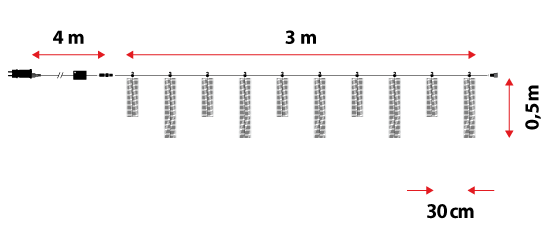 - 3 x h. 0,5 m, 500 microled, cavo argento