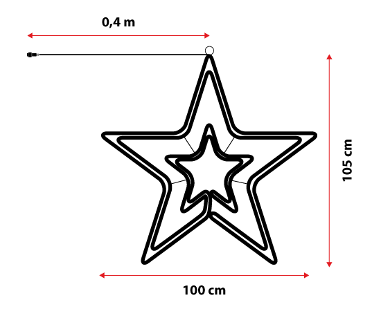Questa stella luminosa professionale di 100 x 105 centimetri è costruita con un tubo luminoso led bianco caldo a luce fissa, che contorna la leggera ma robusta struttura di alluminio.