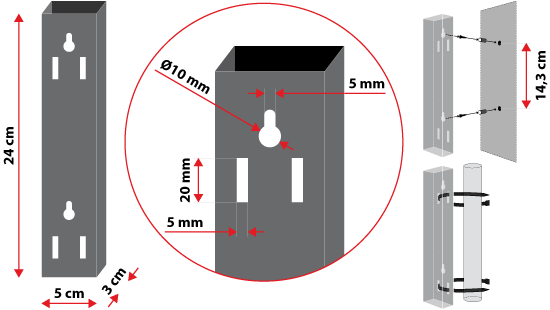 Supporto in alluminio che ti permette di fissare il gambo del tuo ramo luminoso alla parete e far cadere i suoi rami a led dall'alto verso il basso.