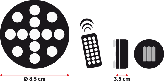 Ognuna contiene 13 led RGB superluminosi e funziona a batteria (3 pile AA non incluse).