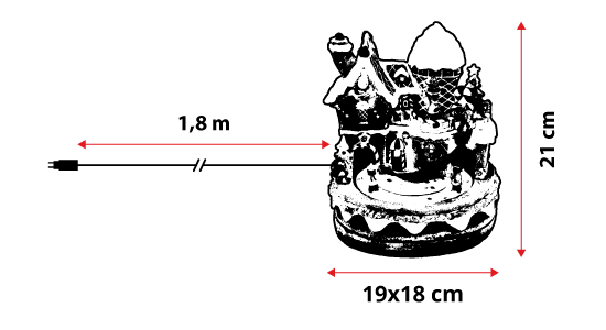 Questo Villaggio di Natale mostra una Casa di Marzapane decorata con glassa colorata, caramelle, alberi di Natale e diversi personaggi che si muovo fuori e dentro la casa. L'intera scena, ricca di dettagli squisiti, è illuminata da luci LED multicolor a luce fissa che creano un'atmosfera magica e festosa, catturando perfettamente lo spirito gioioso del Natale.